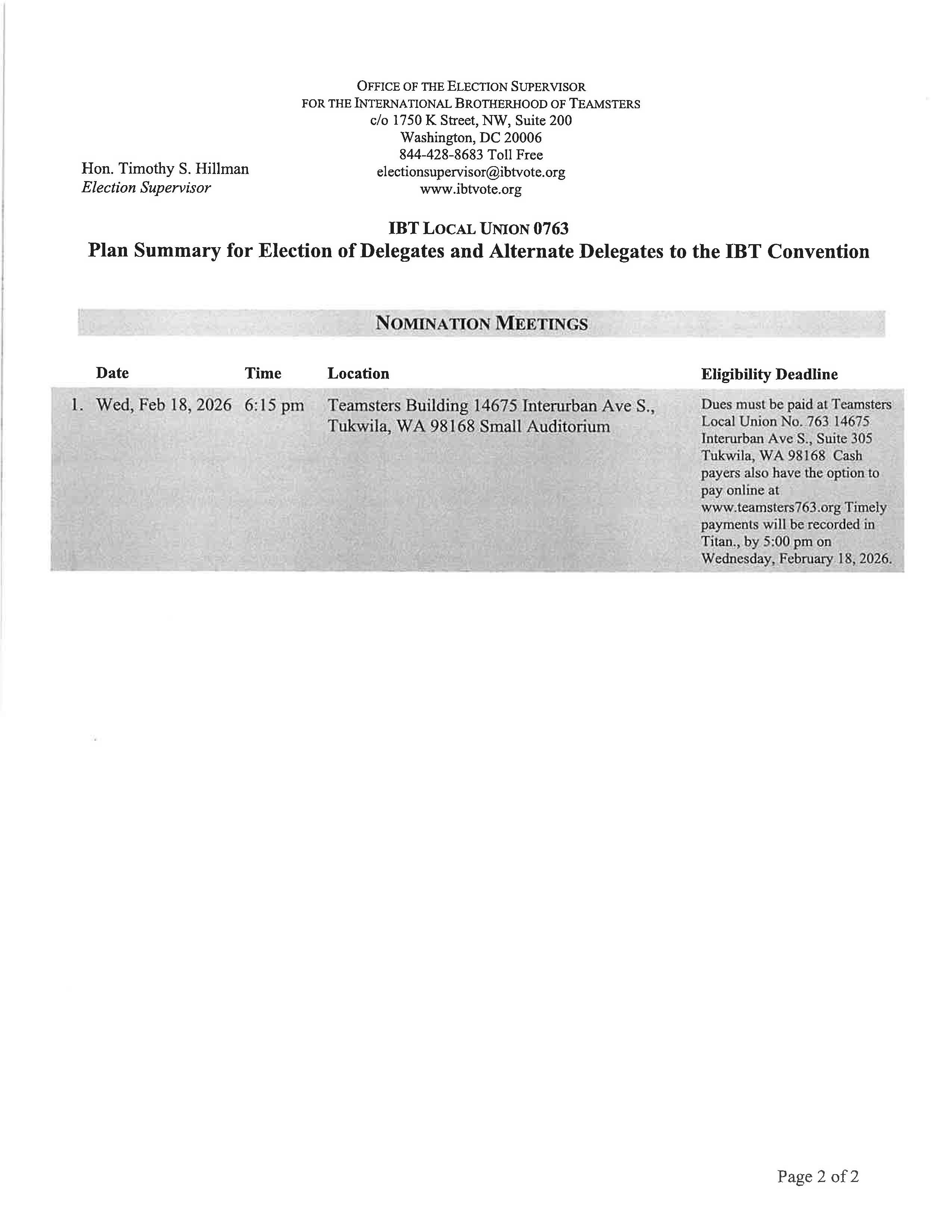 October 14, 2025 Plan Summary for Election of Delegates and Alternate Delegates to the IBT Convention.